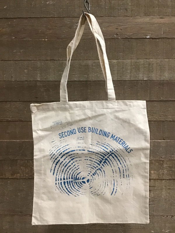 This 100% cotton light canvas has been emblazoned with one of the classic Second Use designs. Screen printed and designed in house. Tote measures 14.75" wide by 15.5" tall. Handle adds about another 9.5" of height. We have several colors of tote & print combinations available; stop by soon to get the perfect one for yourself or as a gift bag for the other Second Use fans in your life!