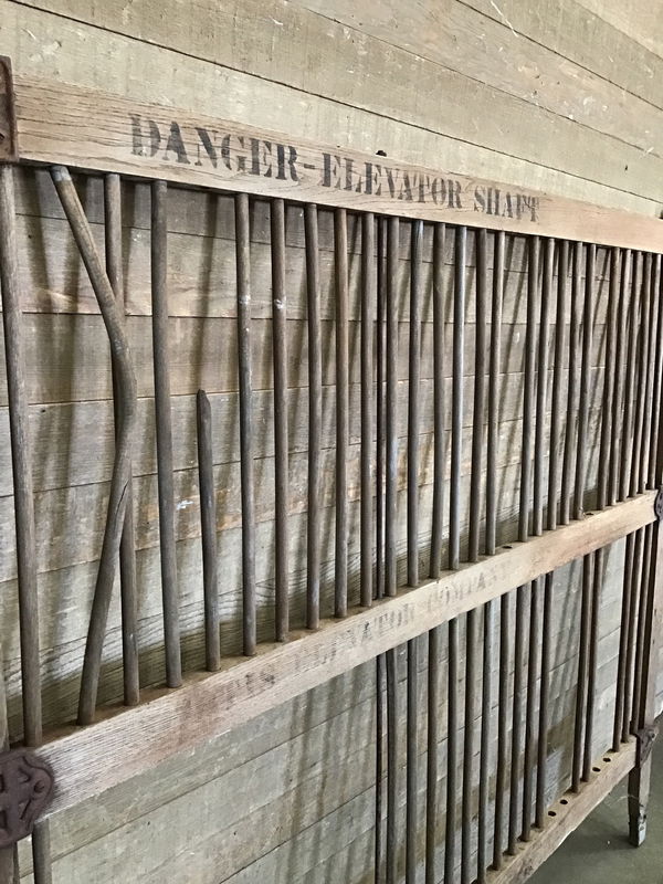 Vintage wooden elevator shaft gate, the original owner said that it is from a local building here in Tacoma and over 100 years old! I could see this piece of history being refurbished, the missing dowels replaced and brought back to its glory! Are you seeing what I'm seeing?? Beautiful bedframe, anyone?? The original painted stenciled words and hardware on this gate truly gives it character! Can't wait to see what you do with this beauty!