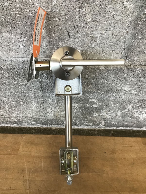 Brushed nickel entryway handleset with everything included except the strike plate. This is not keyed and will need to be paired with a deadbolt if used on an exterior door, but it could be a fabulous gate handle without!