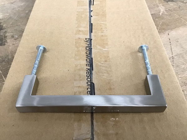 New, unopened box of Elements "Stanton" square cabinet pulls in a satin nickel finish. Twenty-five in the box. We got quite a few of these in at once, so if one box isn't enough to swap out your kitchen cabinet hardware there's plenty more! Check out full product specs here. Photo may be representational.