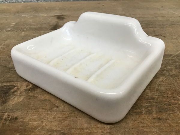 This pair of vintage white porcelain soap dishes does have some minor cosmetic wear from lives well lived, but they are extra special because they actually made it to us with their mounting brackets. As far as vintage soap dishes go, these are unicorns.