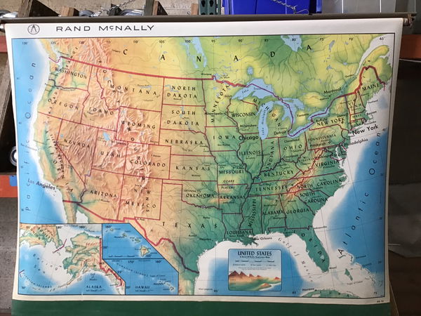 This map is very clear and colorful. It's made from fabric so it's durable too. We don't know how old it is but this being the United States nothing is out of date.