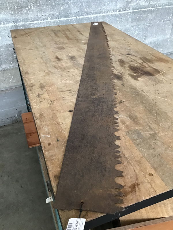 Antique handsaw blade. Great for rustic wall decor in a workshop or bar.