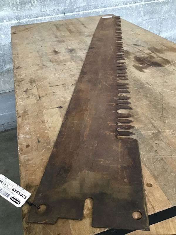 Vintage Dragsaw blade with aggressive teeth. Great for rustic wall decor in a workshop or bar.