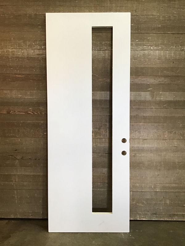 Never installed, 36" fiberglass clad, foam core, exterior door with left hand hinge cuts. This oversized door measures 95" in height. This does not come with window glass insert, price reflects.