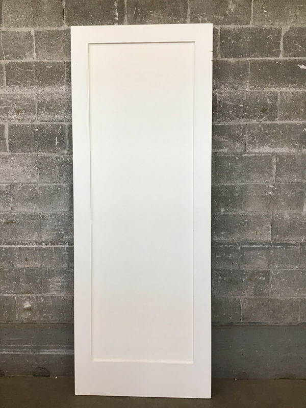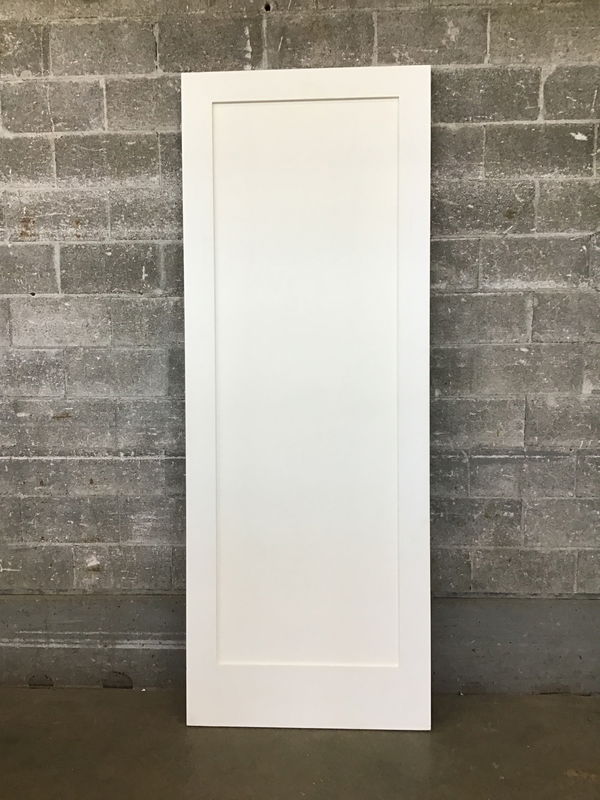 Undrilled, primed masonite, Shaker style one panel interior door that has a couple scuffs, which should cover when you paint.