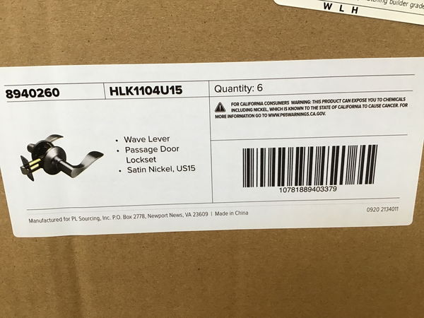 Set of six, brand new, matching builder grade stain nickel interior passage leversets, great deal for oyu if you are seeking to change out mulitple doorknobs at once!