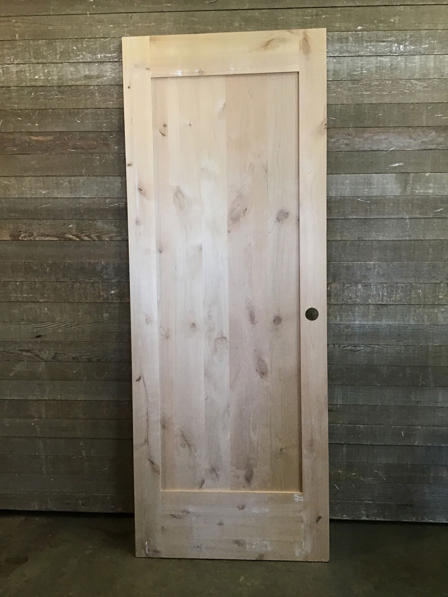 Never installed, oversized 32" shaker style knotty alder interior door with no hinge cuts. Has some minor cosmetic damage and a dent one one side of the door (pictured) otherwise in good sturdy condition!