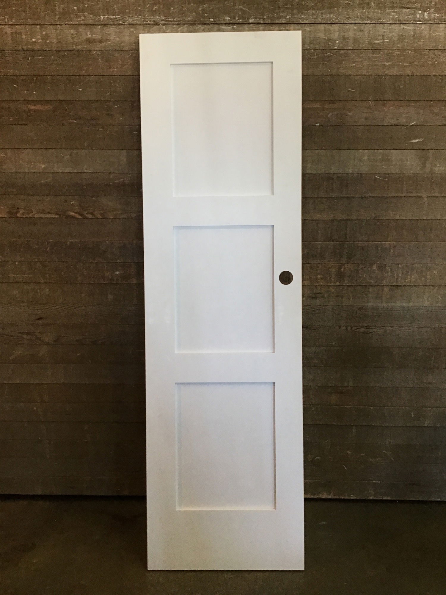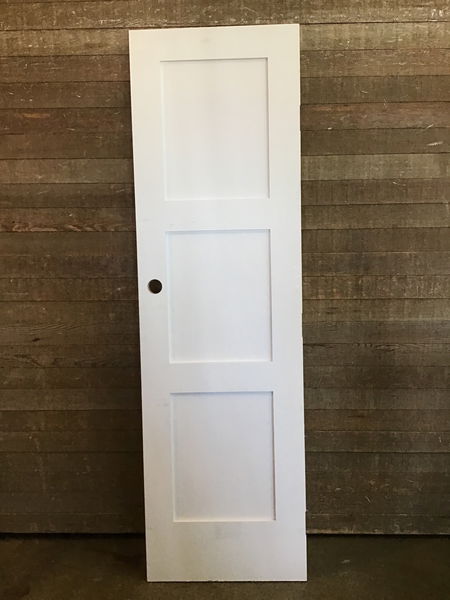 Never installed, 24" primed masonite skin interior shaker style door. Has left hand swing hinge cuts and bore cuts. Some cosmetic damage to veneer at the bottom of the door but in overall good condition!