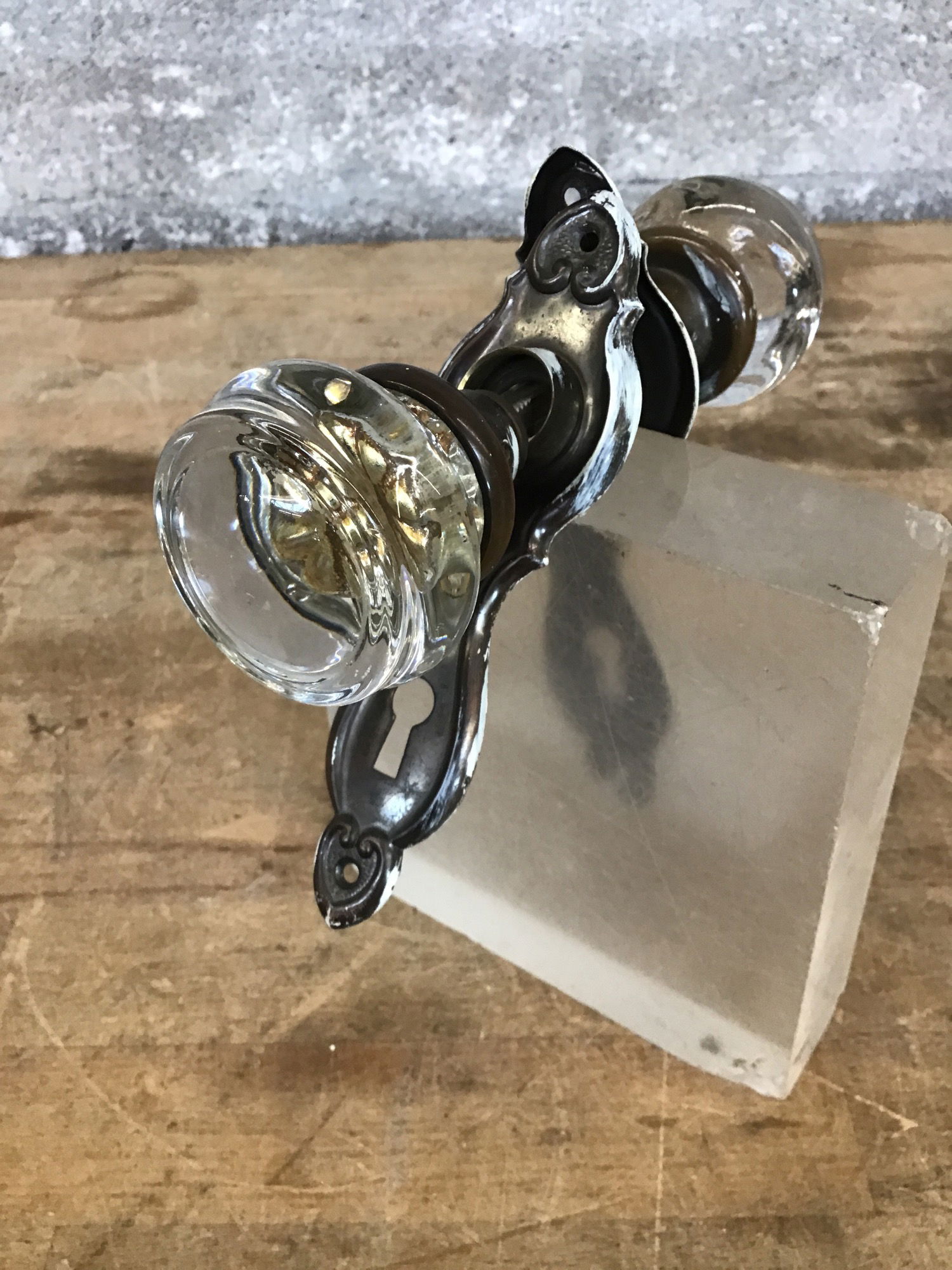 Unique Vintage Glass Door Knobs w/ Escutcheon Set