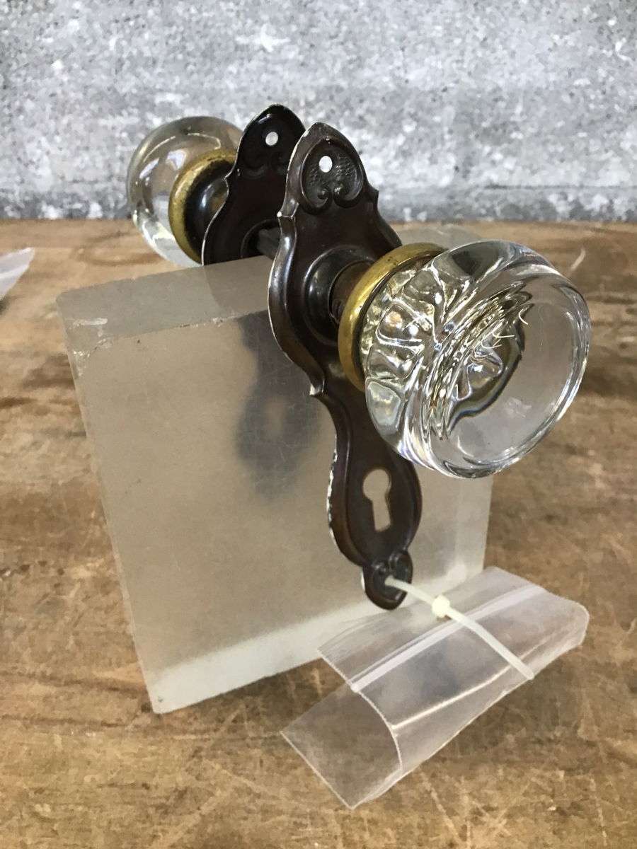 Unique Vintage Glass Door Knobs w/ Escutcheon Set