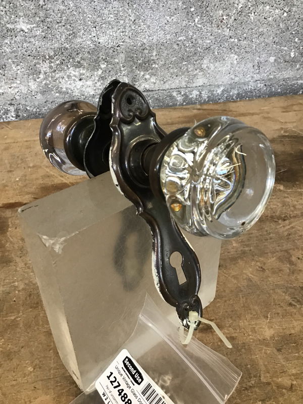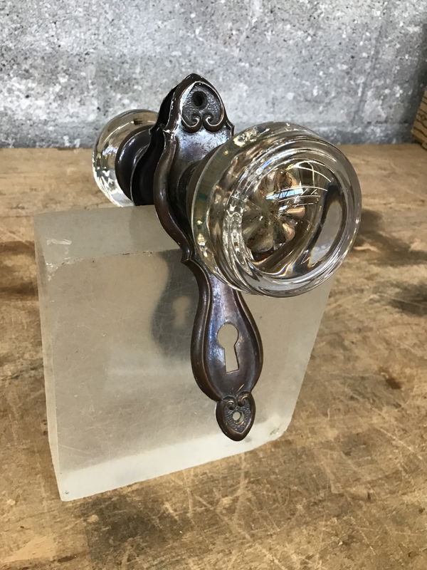Unique Vintage Glass Door Knobs w/ Escutcheon Set
