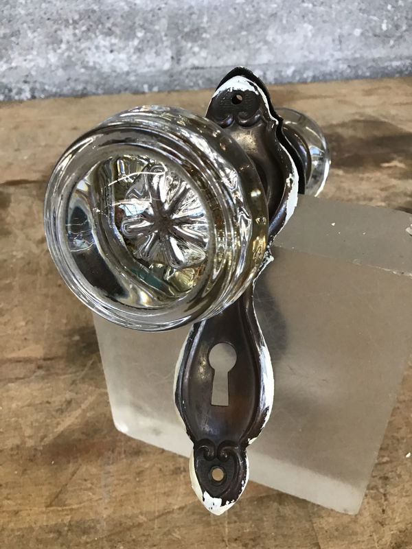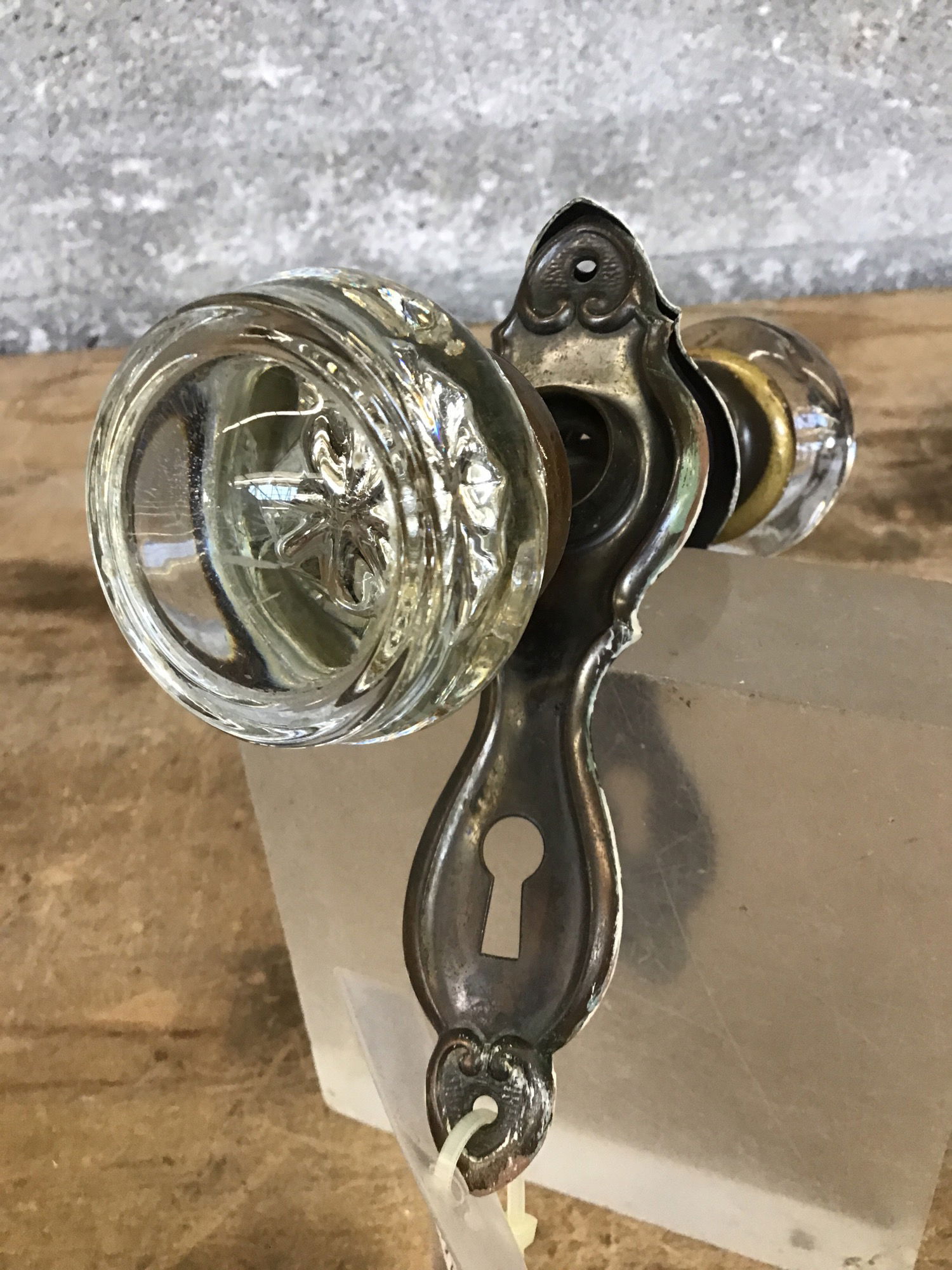 Unique Vintage Glass Door Knobs w/ Escutcheon Set