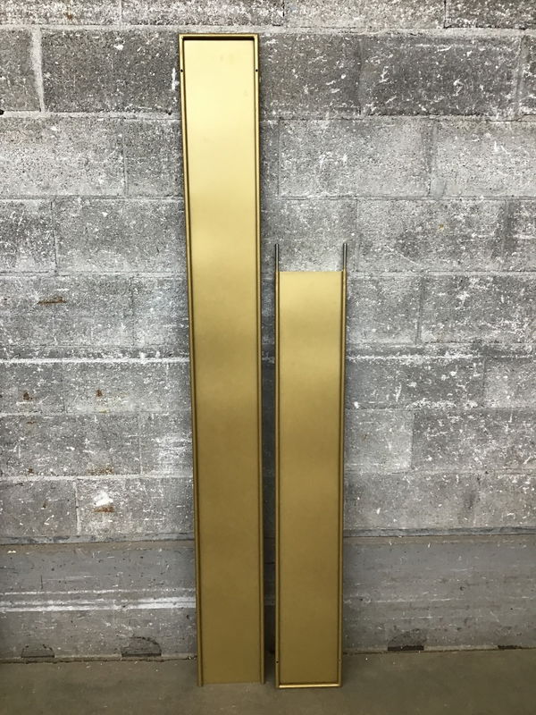 We think this is some kind of metal sign holder. Comes apart in two sections. Its VERY long and narrow, perfect for holding a greeting type of sign or any message you could thing of that has a lot of letters!