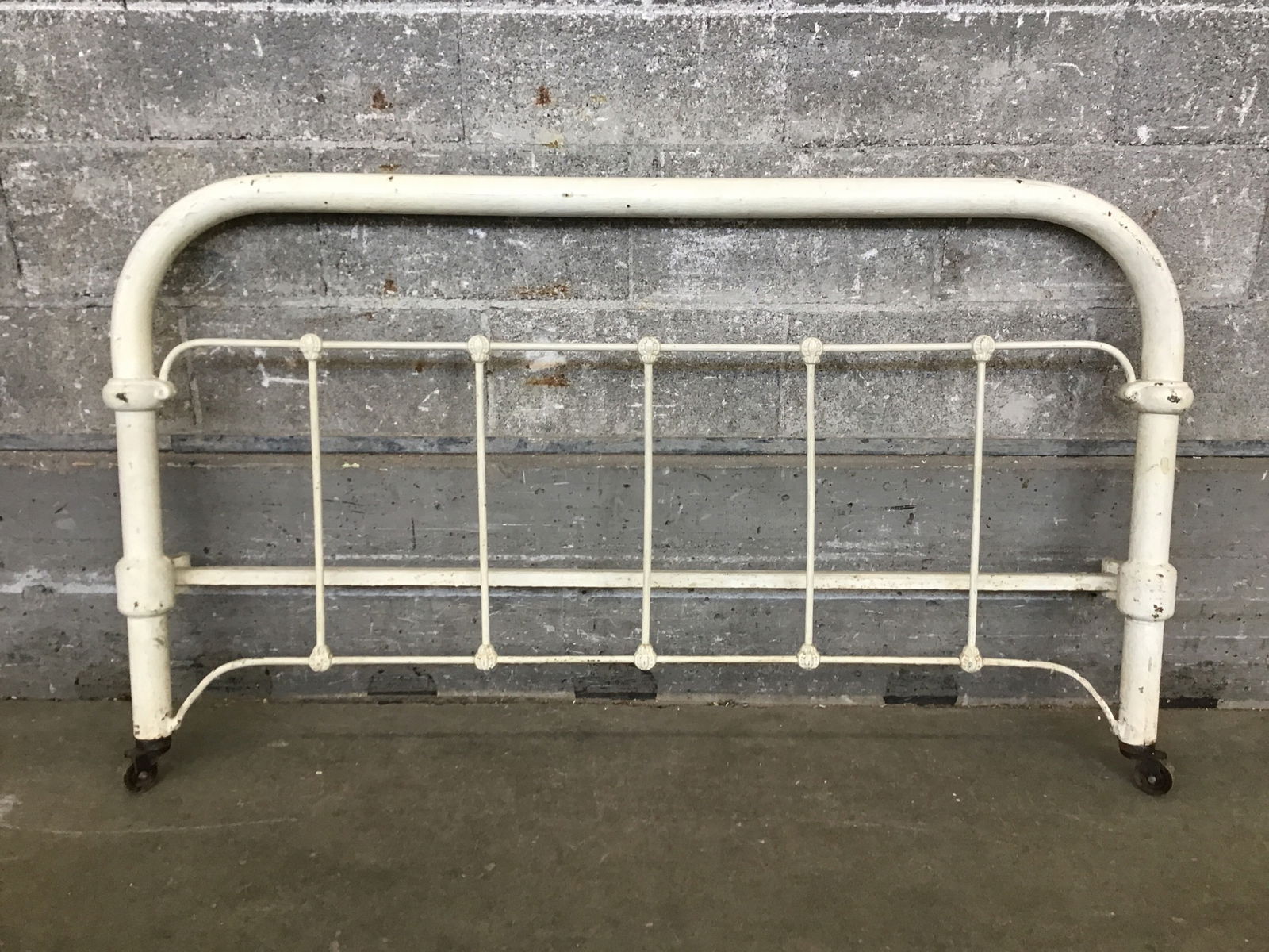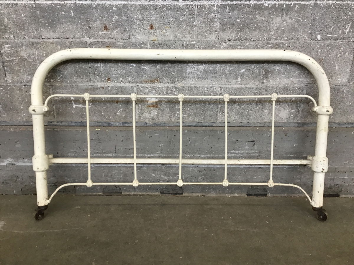 Vintage painted steel bedframe foot board that's ready to become your garden fence or trellis.