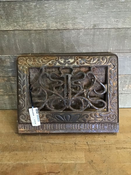 A lovely ornate cast heating grate. Has flap but its pretty rusty. Grate itself is in good condition and will look absolutely amazing after a little clean up and maybe a coat of paint?