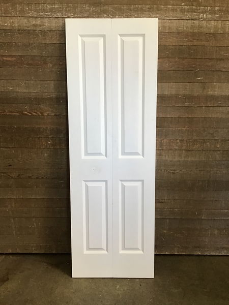 Hollow core, faux panelled bi-fold door. Used and could use a fresh coat of paint.