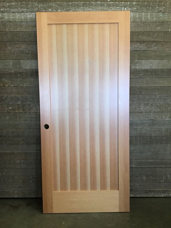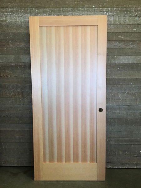 Never installed, fir single shaker panel interior door. Has right hand swing hinge cuts and a beautiful clear finish. No signs of damage.