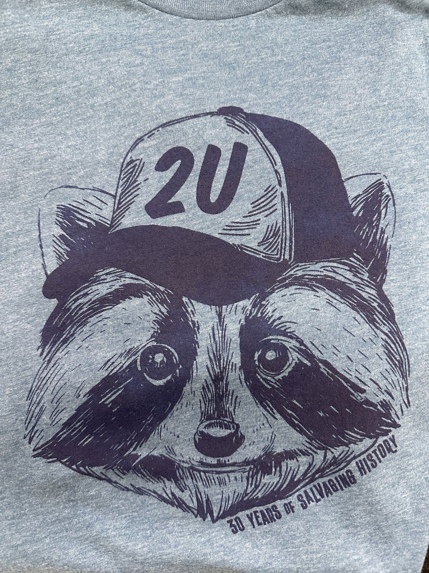 Celebrate 30 years of salvaging local history with this adorable little Trash Panda tee printed in 'Deep Well' on a super soft Heather Deep Teal tee. Designed in house and printed locally. Unisex XS.