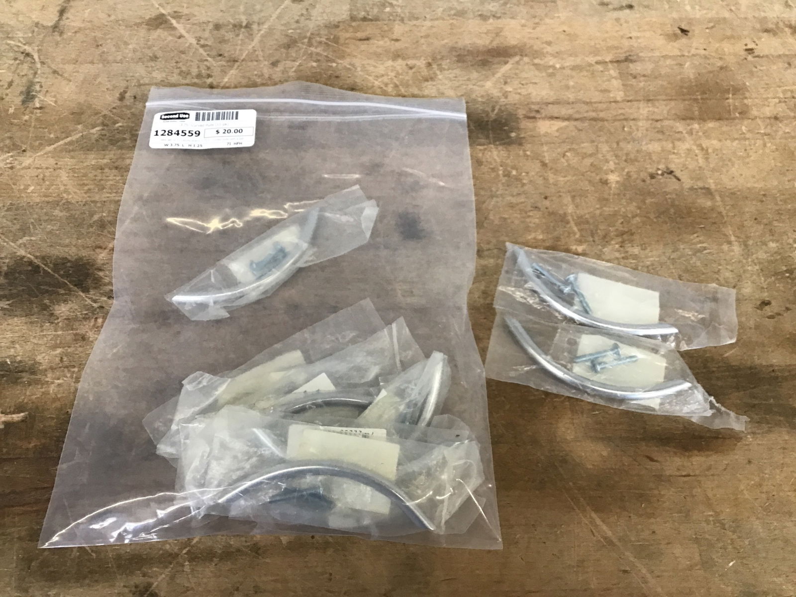 New set of 11 Laurey brand 3.75 in. curved pulls with a satin nickel finish. Machine screws included.