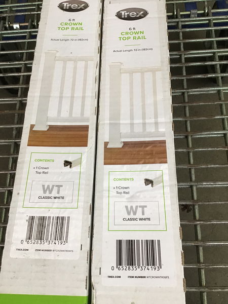 Pair of new Trex Transcend white composite crown top rails.