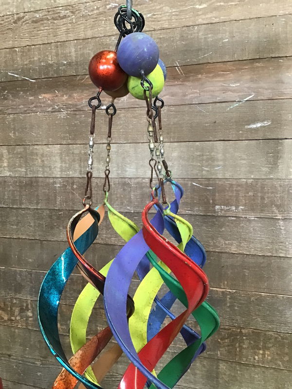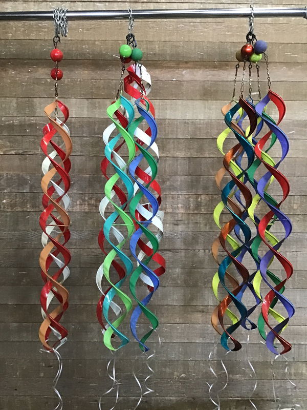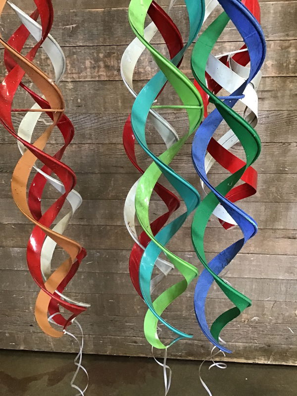 Super fun and colorful hanging wind spinners. Made of metal! A quick and easy addition to make your yard pop all year long. This is a bulk item. No holds please. Photo may be representational.