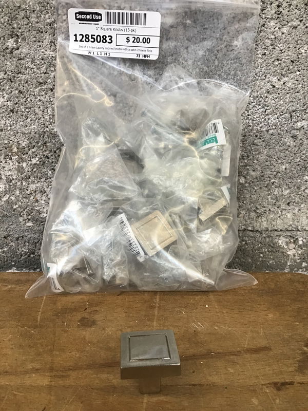 Set of 13 new Laurey cabinet knobs with a satin chrome finish. Mounting screws included.