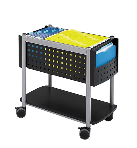 Safco mobile file cart with locking wheels. New in box, never assembled. Full product specs available here.