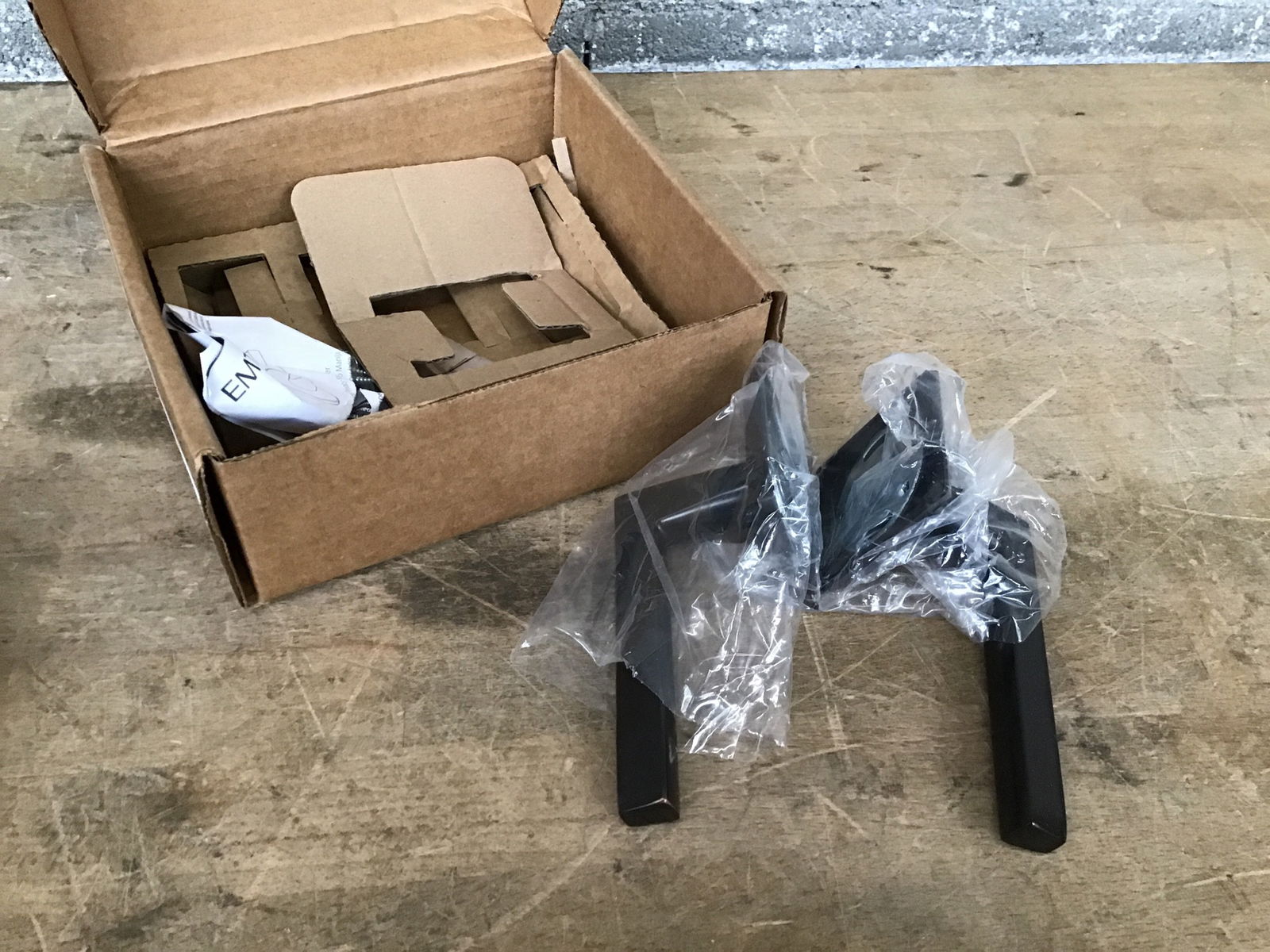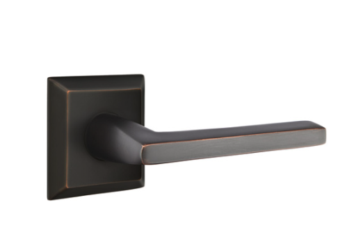 New in box Emtek "Helios" right handed dummy door lever set with "Quincy" square rosette and oil rubbed bronze finish. Retails for $69.