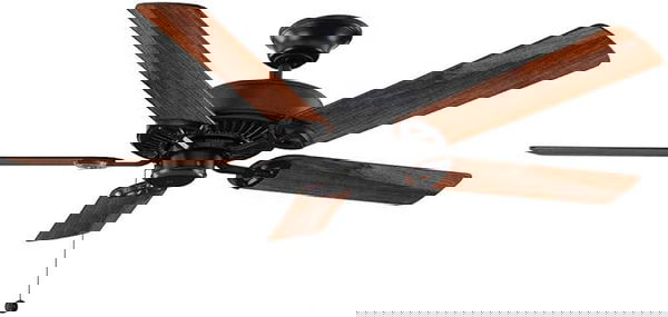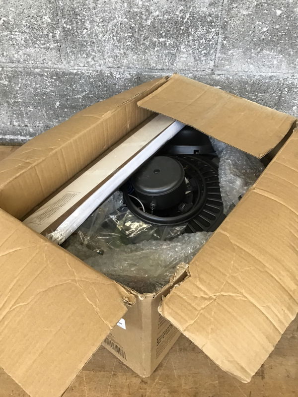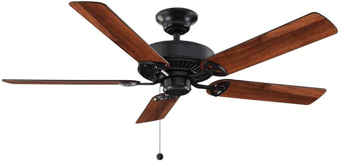 Hampton Bay Farmington 52" ceiling fan with black/walnut blades and a natural iron finish on the body. Still in box, just needs assembly!