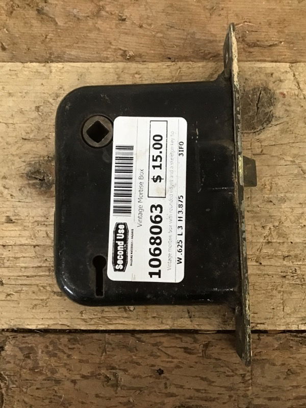 Vintage mortise box with rounded edges and a skeleton key hole. Some paint on the plate that can be kept or removed. Measurements listed are for the box part, the plate is 5.625" high, .875" wide, and 1mm thick.