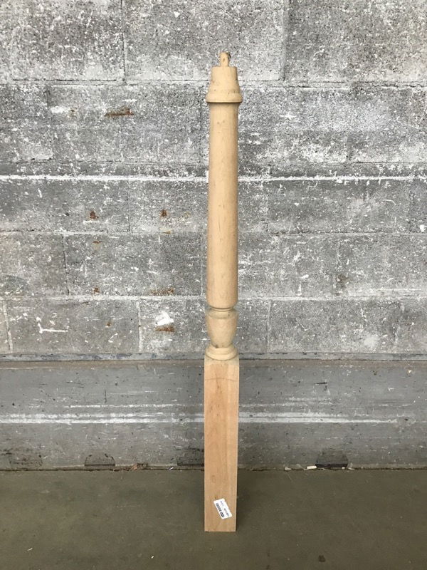 Unfinished maple newel post that has no checking. Height listed does not include pin for you to attach your finial (not included). Item may have cosmetic damage. Photo may be representational.
