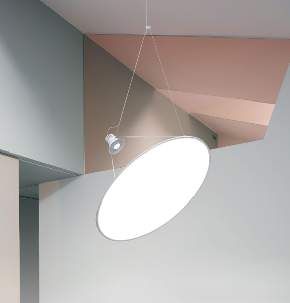 Very cool modern LED tension hanging pendant light in white with a dimmable driver and adjustable spot light. Light is new, Italian made, and Title 24 compliant. It's still all wrapped up in its original packaging; this was a contractor miss order. Full product specs available here. This is a bulk item. No holds please. Photo may be representational.