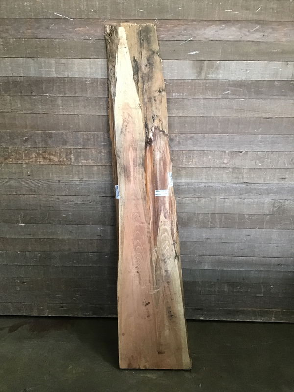 Locally milled and kiln dried. Tapers in width from 15" to 7". Has a bark inclusion.