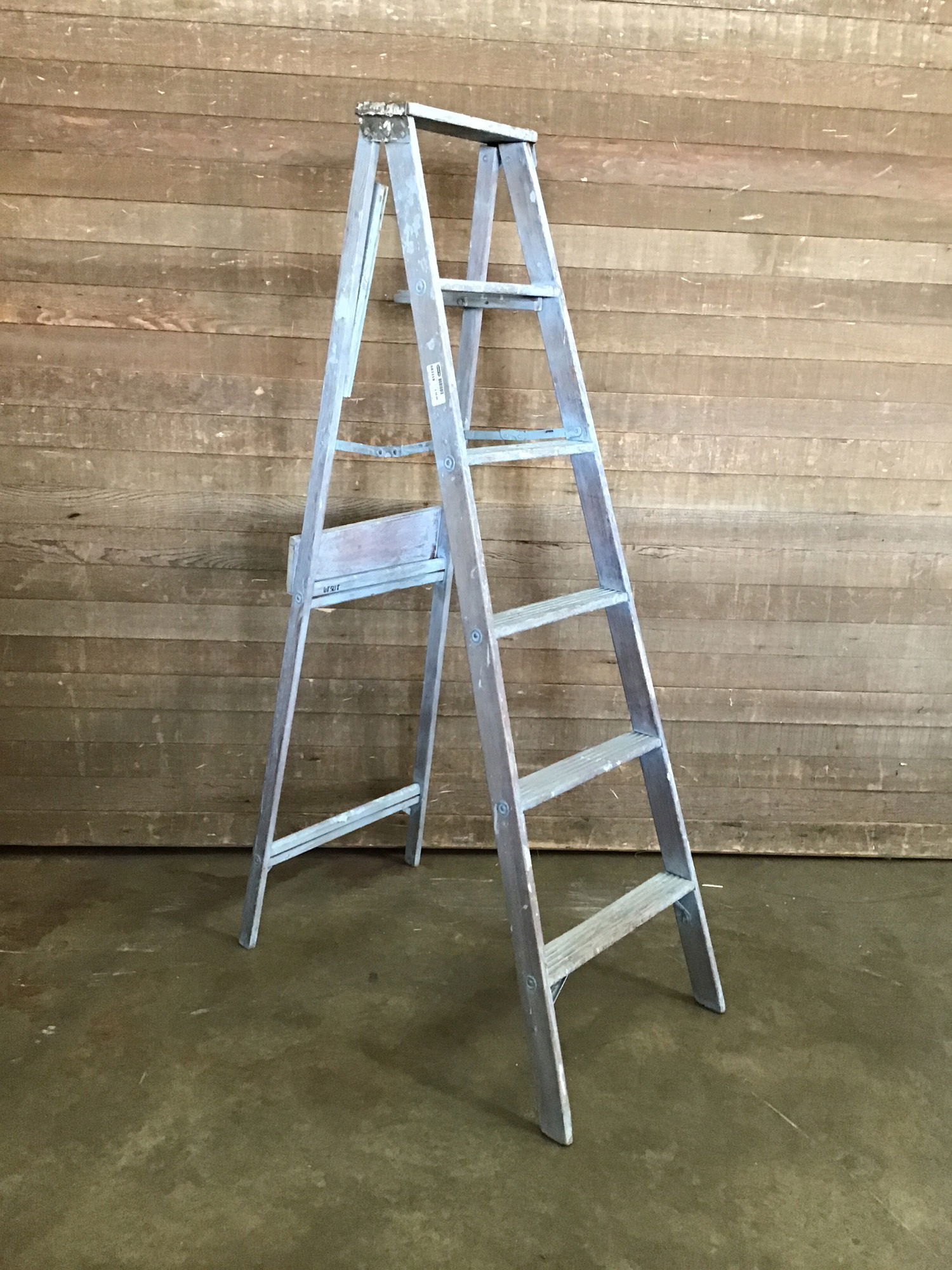 Wooden step ladder, has paint residue on it. Previously owned, use at your own risk & thoroughly test before using!