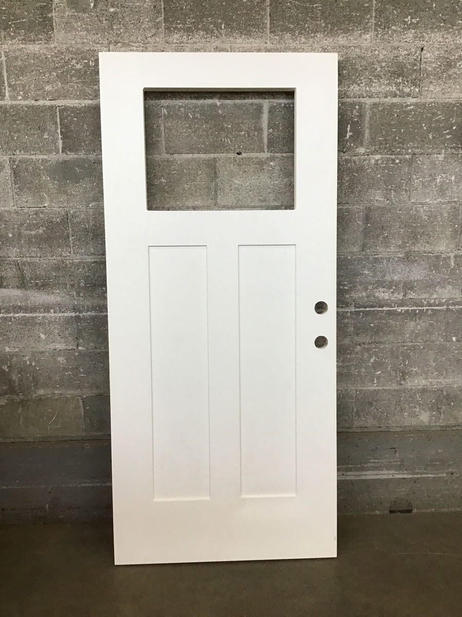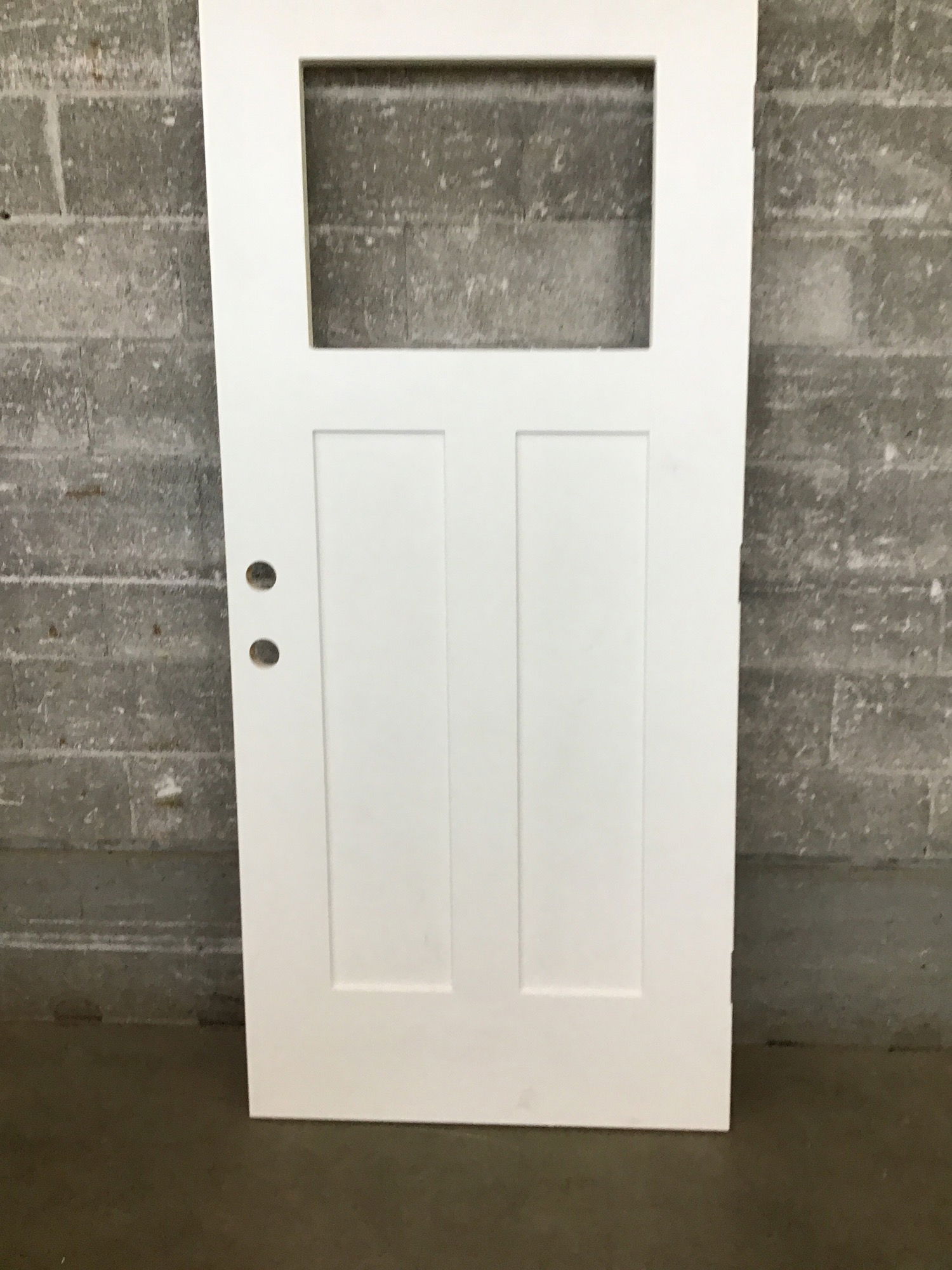 Masonite craftsman-style 2-panel door with a cutout for glass at the top, just needs the glass.