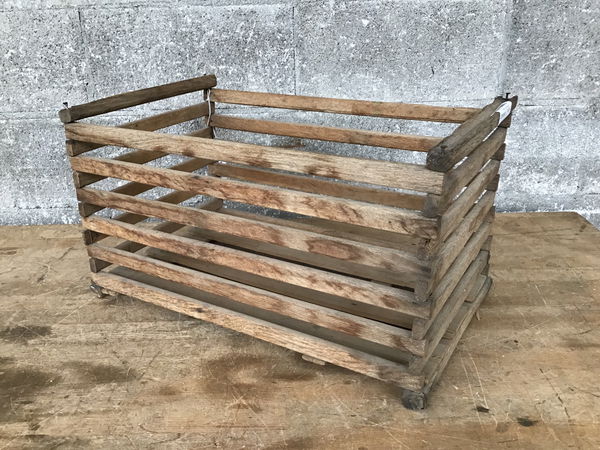 Vintage, possibly antique, oak slat constructed box/crate for hauling your live chickens. There's no lid, but it's a nice looking box.