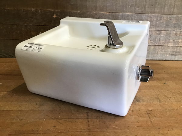 American standard white porcelain drinking fountain with chrome hardware. In decent used shape.