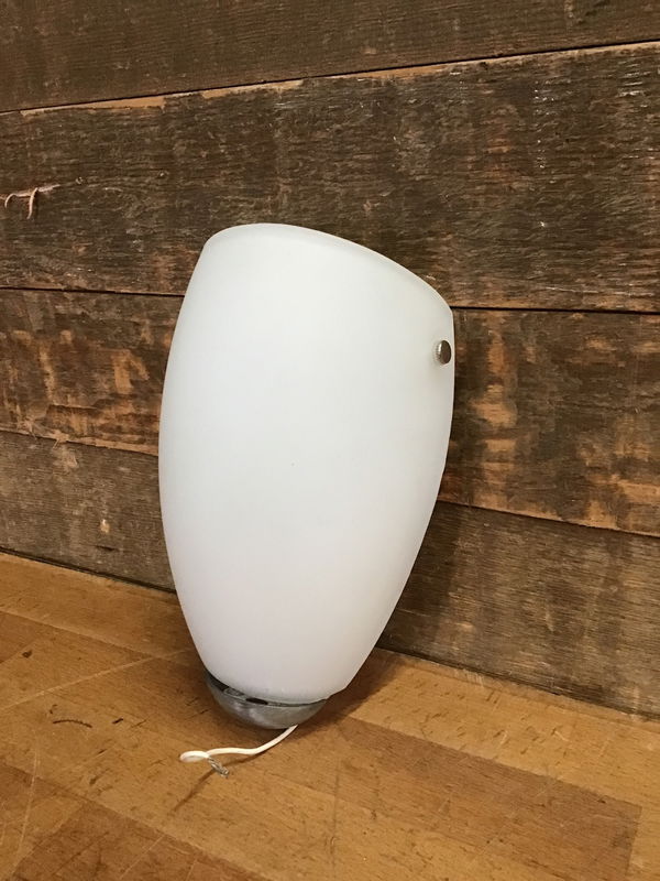 IKEA wall sconce with a nickel finish and a white glass shade in good, used condition. Suitable for dry location only. Wiring looks to be in good condition.