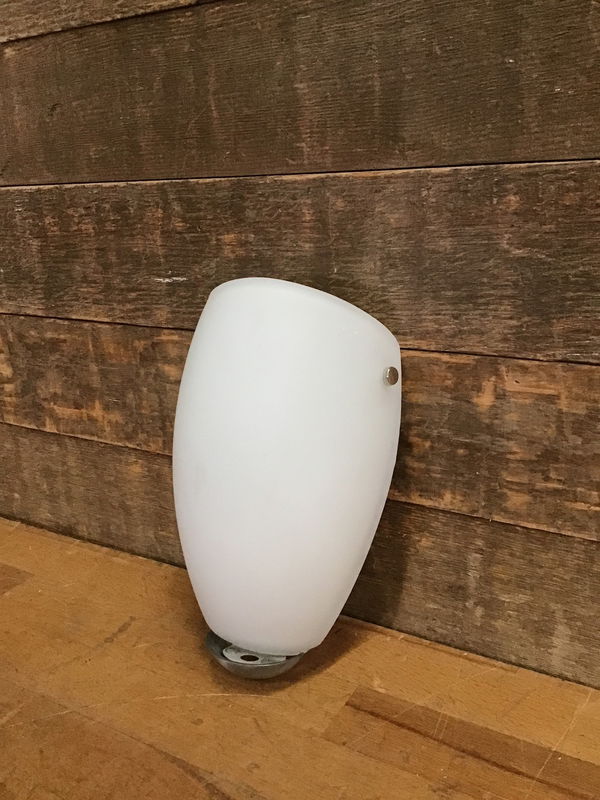 IKEA wall sconce with a nickel finish and a white glass shade in good, used condition. Suitable for dry location only. Wiring looks to be in good condition.