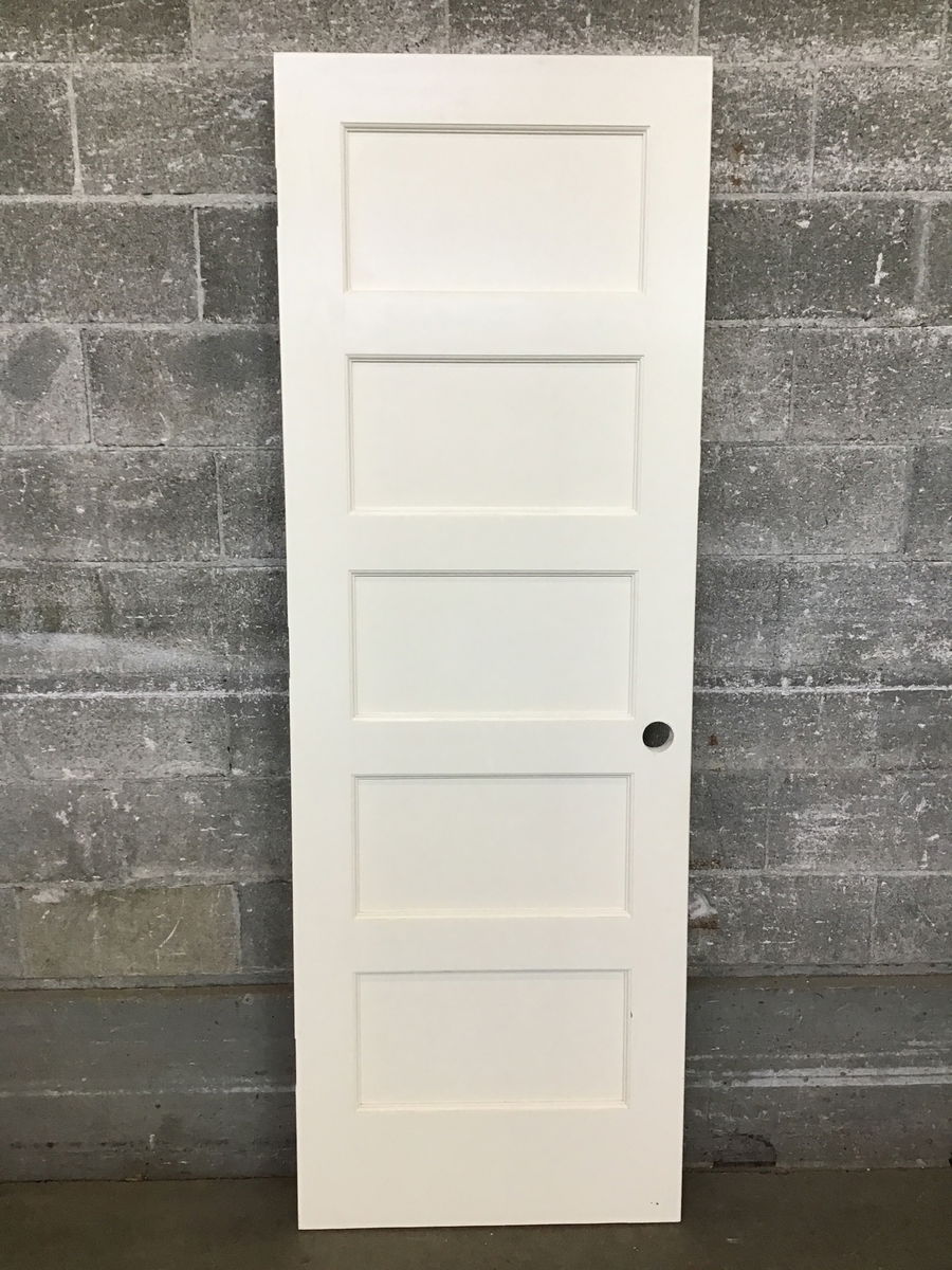 Beautiful, barely used, five-panel interior door slab with crisp professional paint job and standard hardware hole for modern knobset of your choice. This door is ready to go, just needs jamb and hardware.