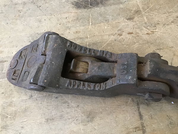 For when you have a railcar and a penny but no engine, this tool will help you get everything going. Made by Rowell Mfg of Appleton, WI. WARNING: handle not attached. This thing has already broken three toes since it's been here!