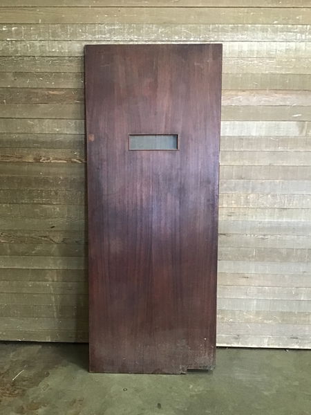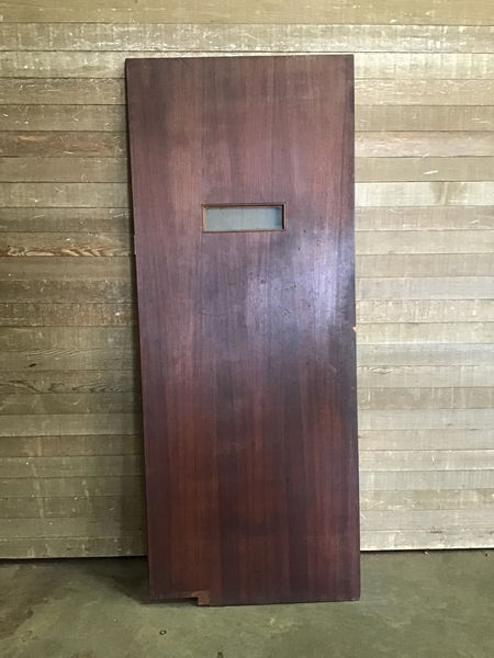 Vintage 32" butler door with a small lite in good, used condition. This door has a Mahogany veneer and has some minor cosmetic damage. Does not come with hardware. Price reflects.