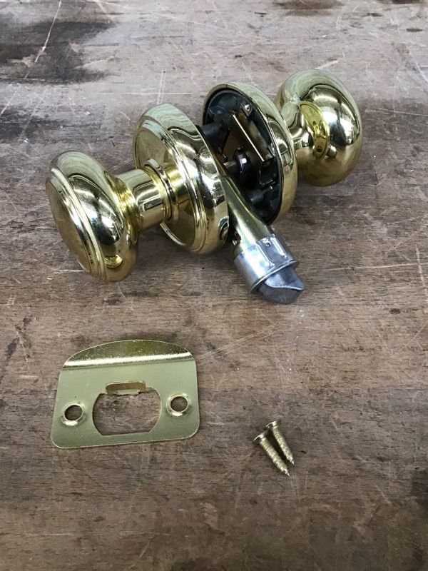 Pair of Baldwin heavy, solid brass door knobs with polished finish. This is a passage set (no privacy lock). Item may have cosmetic damage. Photo may be representational.