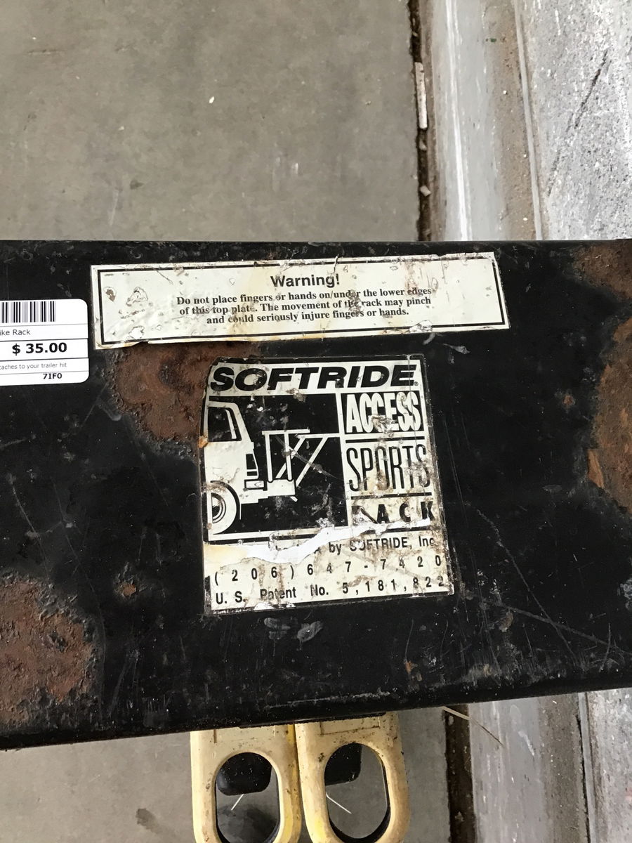 Hefty "Softride" bike rack that attaches to your trailer hitch. It doesn't look the prettiest but it sure is built like a tank. Similar models retail for $200+ new.