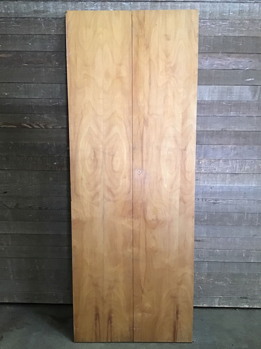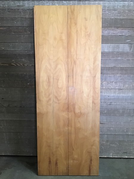 Hollow core bi-fold with a hardwood veneer, looks like birch. Has some scratches and blemishes but in overall good solid shape!
