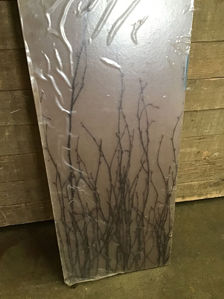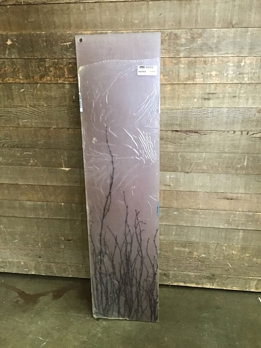 Smaller piece of an acrylic sheet with a red toned twigs in the middle. This piece would be great for smaller projects. This piece is 5/8" thick and has a protective wrap on one both sides.