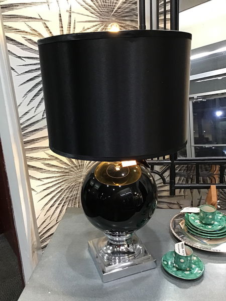 Freshly assembled out of the box Abbyson Living Black Glass Table Lamp.