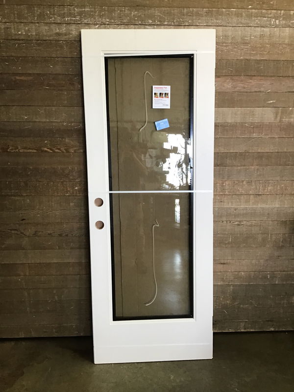 Fiberglass clad thermopane exterior door in great shape and never installed before. Has some cosmetic blemishes like a rash as the top but in otherwise excellent unused shape.