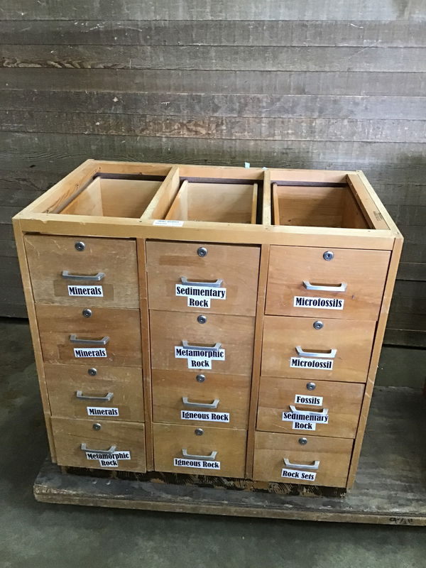 Formerly used in a local middle school, this Birch cabinet with 12 drawers would be a great addition to your shop! Features nickel pulls and the drawers are lockable, though no keys are included. One drawer is a little off and will need to be adjusted.